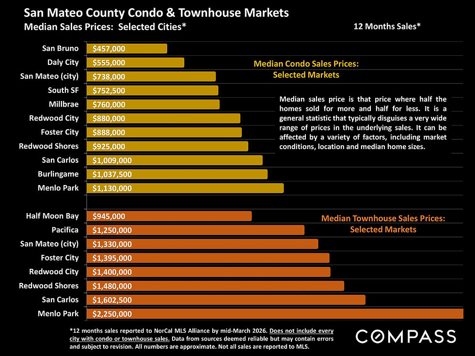 According to the Compass San Mateo County Real Estate Market Report, April 2026 (data through March), contract activity, total sales, and luxury transactions all increased through March, while inventory levels did not expand enough to materially shift supply-demand balance.